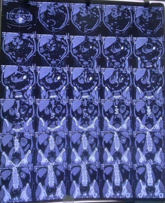 Qua thăm khám và chẩn đoán hình ảnh, các bác sĩ xác định bệnh nhân bị sỏi san hô thận trái và sỏi nhỏ thận phải trên nền thận dị dạng bẩm sinh – gọi là thận móng ngựa. Đây là tình huống phức tạp vì thận móng ngựa có cấu trúc giải phẫu khác thường, khiến việc phẫu thuật lấy sỏi khó khăn hơn nhiều so với bệnh nhân thận bình thường.