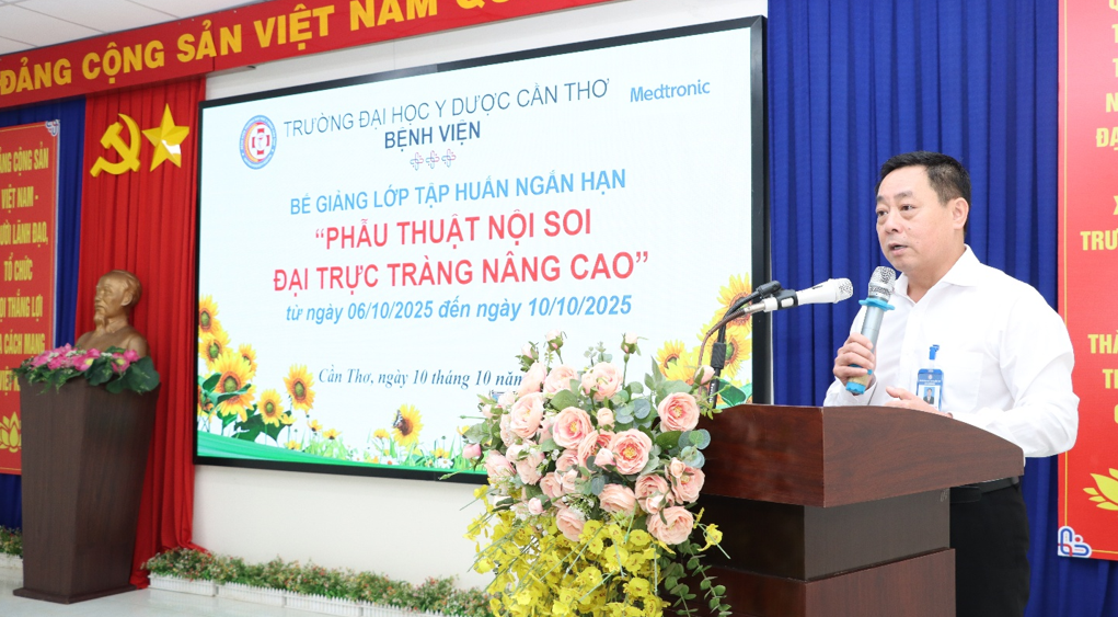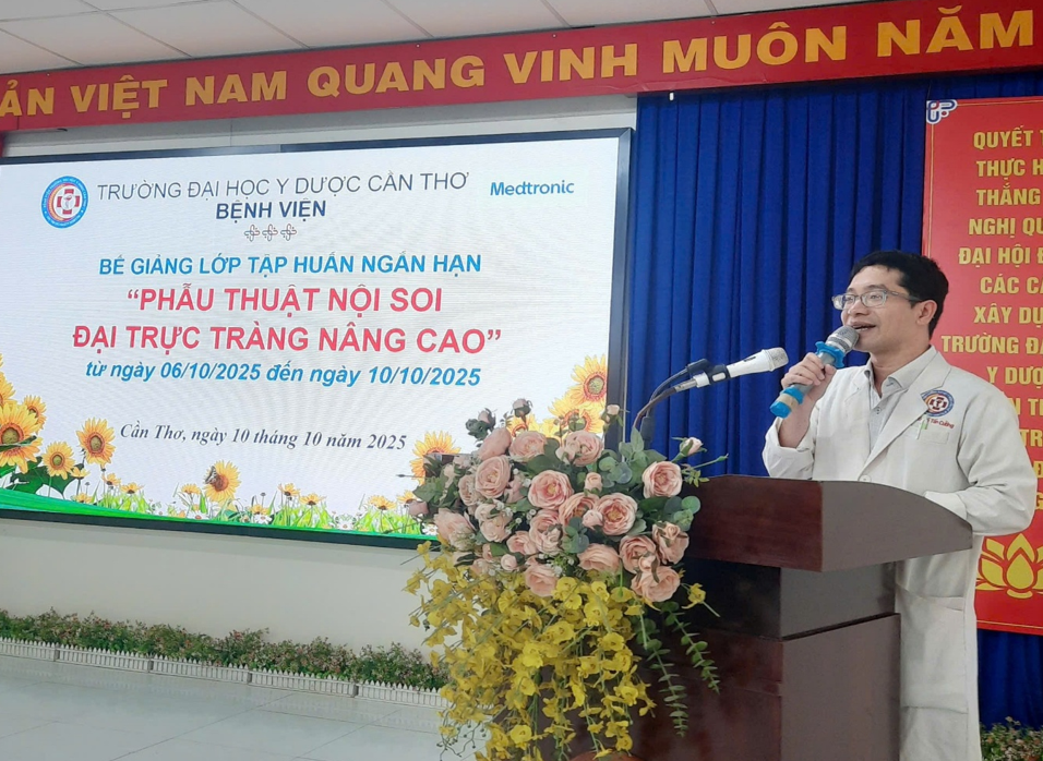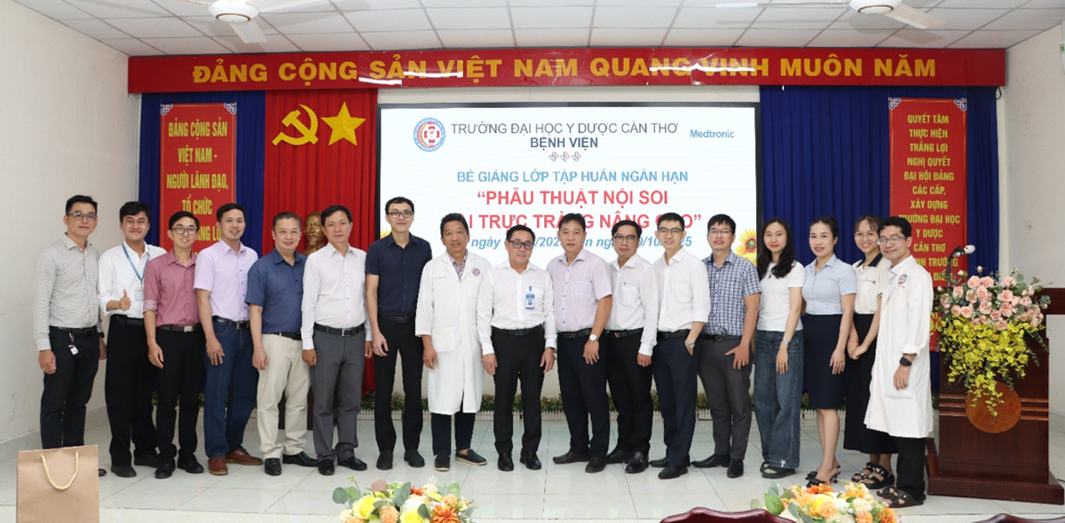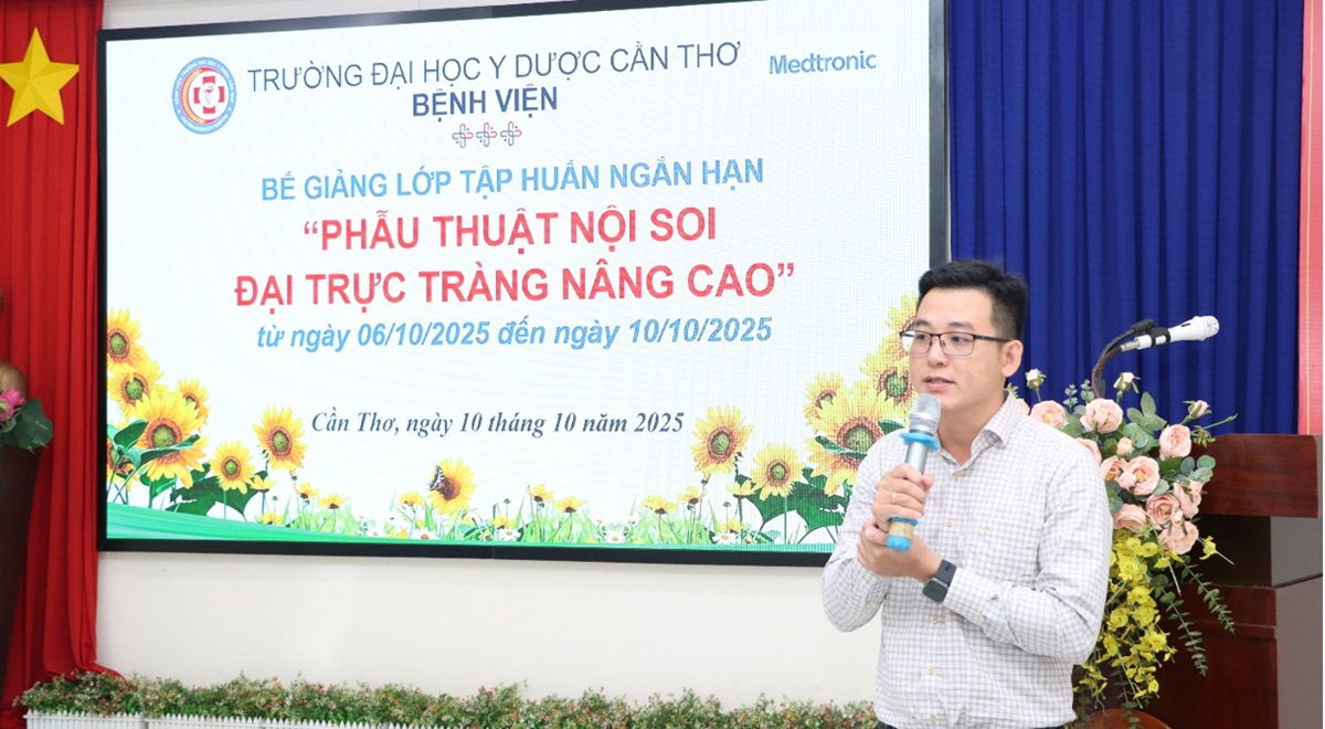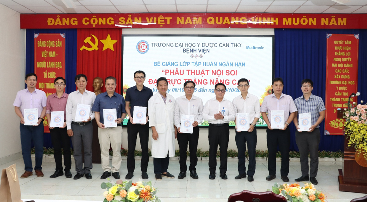 Sau 5 ngày học tập và thực hành tích cực, ngày 10 tháng 10 năm 2025, lớp tập huấn ngắn hạn “Phẫu thuật nội soi đại, trực tràng nâng cao” do Bệnh viện Trường Đại học Y Dược Cần Thơ phối hợp với Công ty TNHH Medtronic Việt Nam tổ chức đã chính thức bế giảng và trao chứng nhận hoàn thành khóa học cho 10 học viên.
