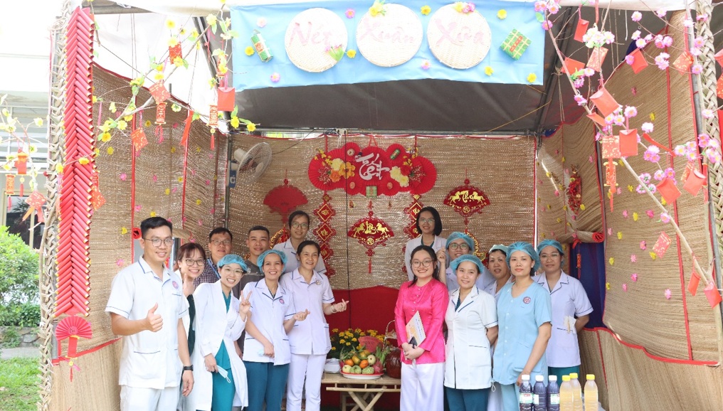 Đồng hành và tiếp thêm động lực cho hội thi, Cô PGS.TS Nguyễn Minh Phương đã trực tiếp đến tham quan từng gian hàng trong hành trình đầy cảm hứng – như một cuộc du Xuân thu nhỏ giữa lòng bệnh viện. Từ sắc đỏ rộn ràng của câu đối, sắc vàng mai đào đến những vật liệu mộc mạc được tái chế tinh tế, tất cả hiện lên như những “trạm dừng Xuân” giàu bản sắc. Những lời chúc mừng ấm áp cùng sự động viên chân thành của Cô đã góp phần làm cho hành trình du Xuân ấy thêm trọn vẹn, lan tỏa niềm vui và khí thế thi đua sôi nổi đến từng đội thi.