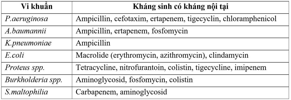 2. Đề kháng nội tại của vi khuẩn đối với một số chủng vi khuẩn thường gặp và các cân nhắc trong lựa chọn và phối hợp kháng sinh