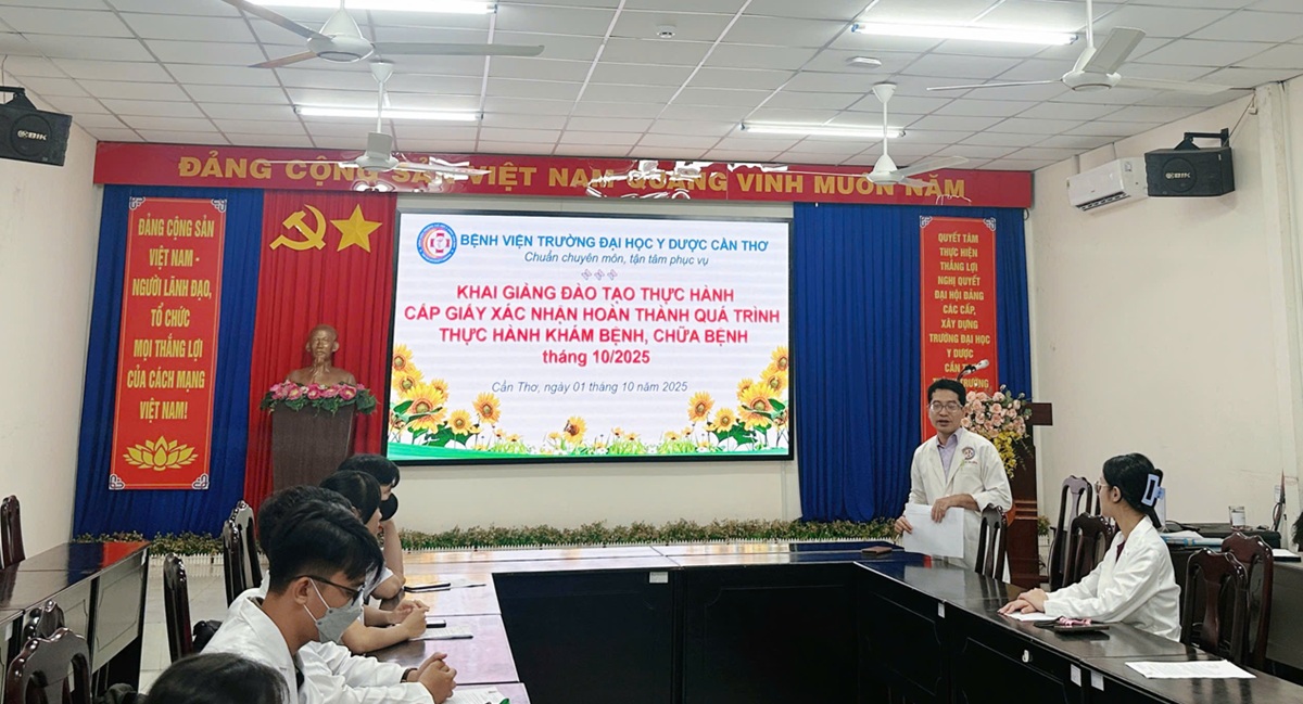 Sáng ngày 01 tháng 10 năm 2025, Bệnh viện Trường Đại học Y Dược Cần Thơ đã tổ chức Lễ khai giảng khóa đào tạo thực hành và cấp giấy xác nhận hoàn thành quá trình thực hành khám bệnh, chữa bệnh – tháng 10, năm 2025.
