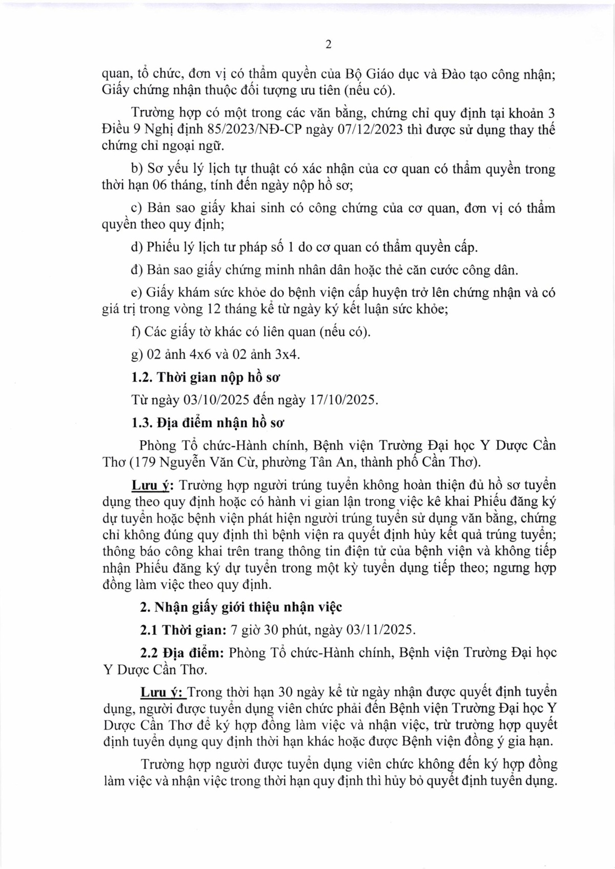 Thông báo số 01 Kết quả tuyển dụng viên chức đợt 2 năm 2025 của Bệnh viện Trường Đại học Y Dược Cần Thơ