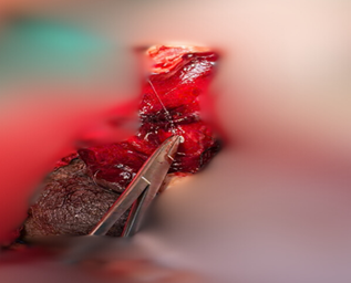 Lấy khối máu tụ và khâu phục hồi bao trắng. Ekip phẫu thuật viên