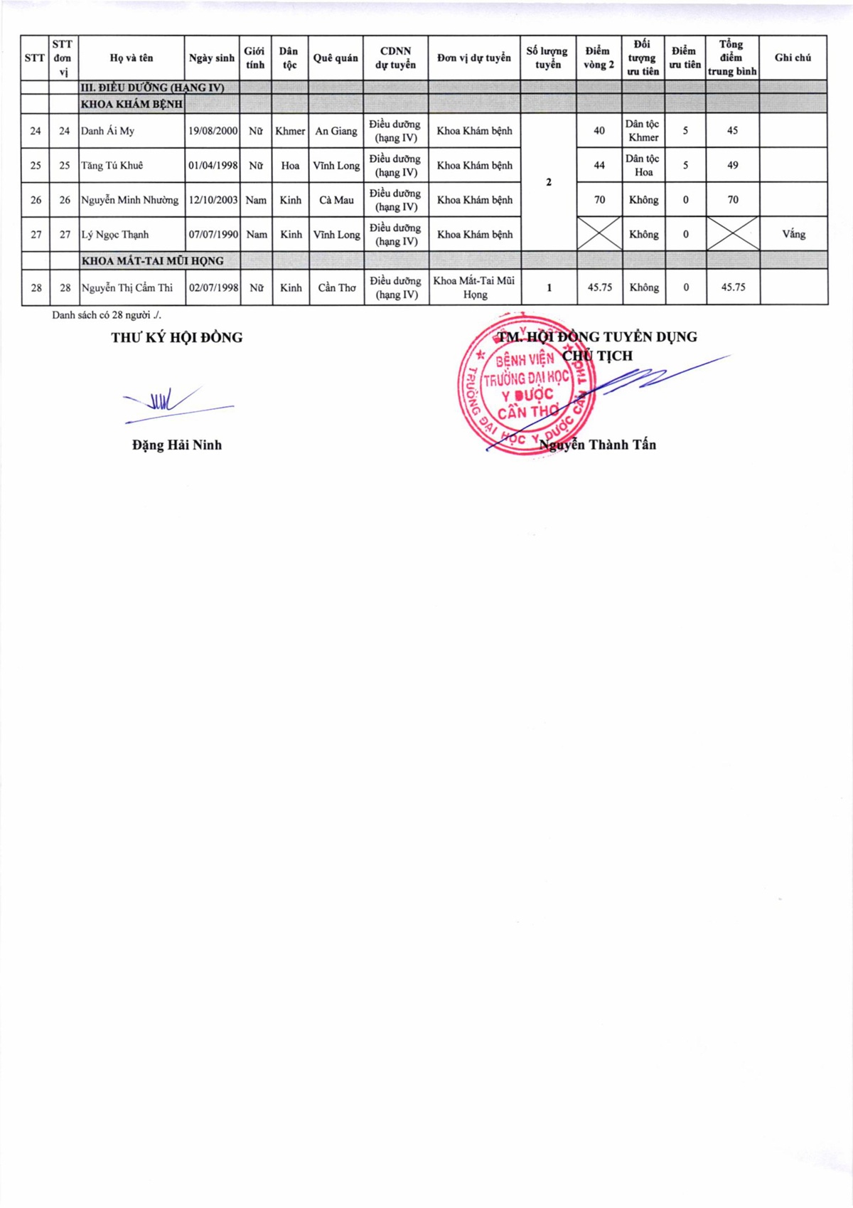 Thông báo số 06 công nhận kết quả trúng tuyển kỳ xét tuyển viên chức đợt 2 năm 2025 của Bệnh viện Trường Đại học Y Dược Cần Thơ
