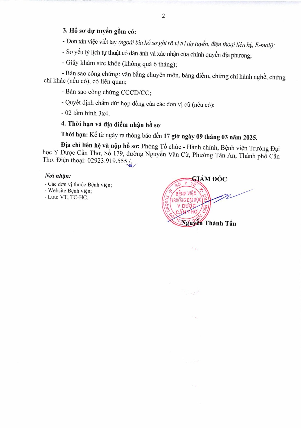 Thông báo số 01 Kết quả tuyển dụng viên chức đợt 2 năm 2025 của Bệnh viện Trường Đại học Y Dược Cần Thơ