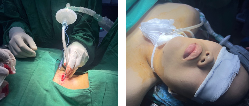 Hình 4. Vô cảm cho phẫu thuật mở khí quản