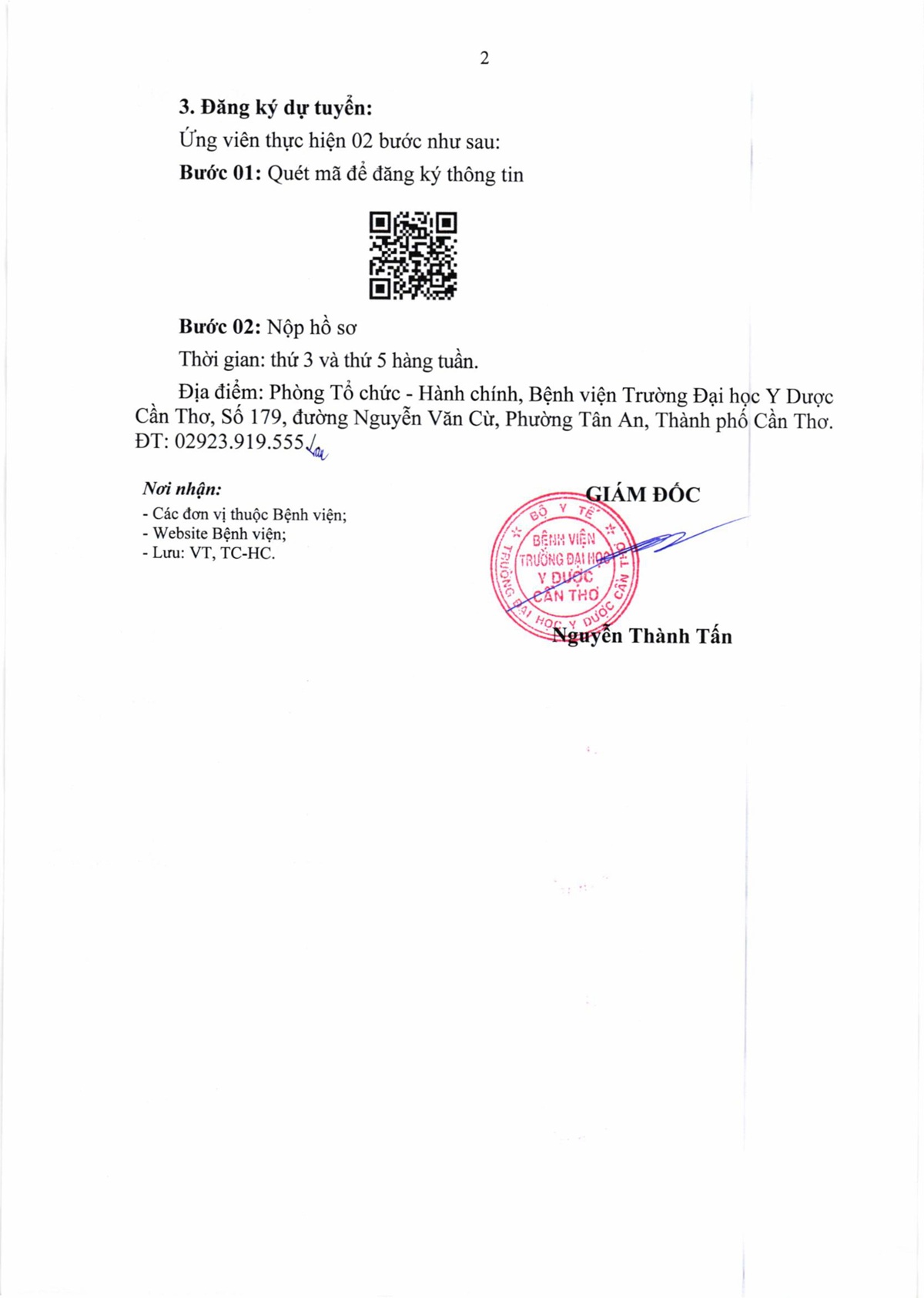 Thông báo số 01 Kết quả tuyển dụng viên chức đợt 2 năm 2025 của Bệnh viện Trường Đại học Y Dược Cần Thơ