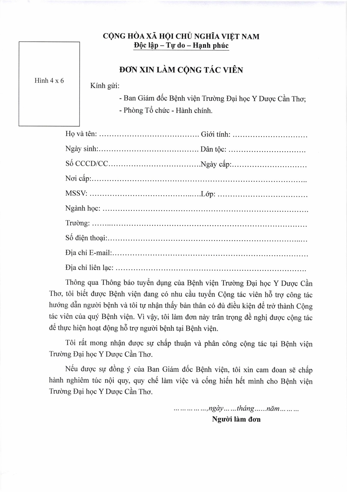 Thông báo số 42 về việc tuyển cộng tác viên hỗ trợ công tác hướng dẫn người bệnh.